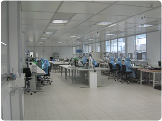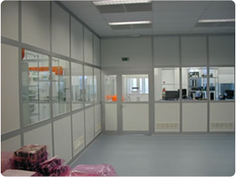 Modulaire Cleanroom - ISO 14644-1 klasse 7 - wanden uit 36 mm sandwichpanelen - laminaire inblaas met FilterFanUnits - retourroosters geintegreerd in wanden |